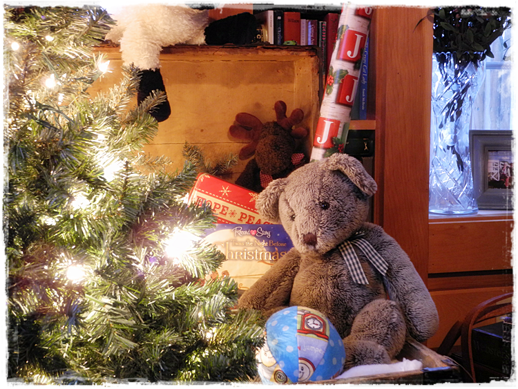 Oh no ! I hope you can salvage the books glad more didn't get damaged ! I do love these types of Christmas cards always a favorite of mine ! The trunk with the teddy and toys is wonderful there by the tree ! Thanks for sharing , lovely photos, have a good day and hope all works out well !
